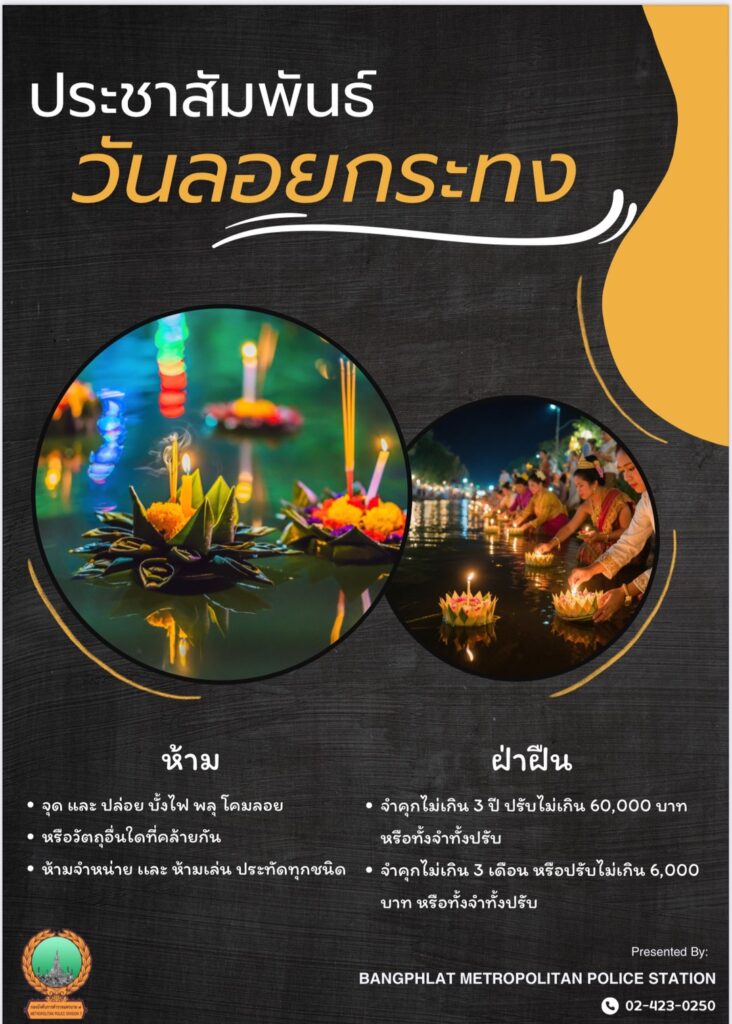 สน.บางพลัด ประชาสัมพันธ์ วันลอยกระทง ประจำปี 2568 ข้อห้ามในวันลอยกระทงหากฝ่าฝืนเป็นความผิดได้ admin 5 วัน ago Continue Reading Previous: สน.บางพลัด เข้าร่วมพิธีปล่อยแถวระดมกวาดล้างป้องกันอาชญากรรม การรักษาความสงบเรียบร้อย ความปลอดภัยในชีวิตและทรัพย์สินของประชาชนและนักท่องเที่ยว เทศกาลลอยกระทง ประจำปี 2568 ณ บริเวณใต้สะพานพระราม 8Next: สน.บางพลัด ร่วมปล่อยแถวป้องกันเหตุเนื่องในวันเทศกาลวันลอยกระทง ประจำปี 2568 เพื่อดูแลความปลอดภัยให้กับประชาชน ณ บริเวณใต้สะพานพระราม 8 แขวงบางยี่ขัน เขตบางพลัด กรุงเทพมหานคร ใส่ความเห็น ยกเลิกการตอบอีเมลของคุณจะไม่แสดงให้คนอื่นเห็น ช่องข้อมูลจำเป็นถูกทำเครื่องหมาย *ความเห็น * ชื่อ * อีเมล * เว็บไซต์ บันทึกชื่อ, อีเมล และชื่อเว็บไซต์ของฉันบนเบราว์เซอร์นี้ สำหรับการแสดงความเห็นครั้งถัดไป Related Stories สน.บางพลัด ร่วมปล่อยแถวป้องกันเหตุเนื่องในวันเทศกาลวันลอยกระทง ประจำปี 2568 เพื่อดูแลความปลอดภัยให้กับประชาชน ณ บริเวณใต้สะพานพระราม 8 แขวงบางยี่ขัน เขตบางพลัด กรุงเทพมหานคร สน.บางพลัด ร่วมปล่อยแถวป้องกันเหตุเนื่องในวันเทศกาลวันลอยกระทง ประจำปี 2568 เพื่อดูแลความปลอดภัยให้กับประชาชน ณ บริเวณใต้สะพานพระราม 8 แขวงบางยี่ขัน เขตบางพลัด กรุงเทพมหานคร 5 วัน ago สน.บางพลัด เข้าร่วมพิธีปล่อยแถวระดมกวาดล้างป้องกันอาชญากรรม การรักษาความสงบเรียบร้อย ความปลอดภัยในชีวิตและทรัพย์สินของประชาชนและนักท่องเที่ยว เทศกาลลอยกระทง ประจำปี 2568 ณ บริเวณใต้สะพานพระราม 8 สน.บางพลัด เข้าร่วมพิธีปล่อยแถวระดมกวาดล้างป้องกันอาชญากรรม การรักษาความสงบเรียบร้อย ความปลอดภัยในชีวิตและทรัพย์สินของประชาชนและนักท่องเที่ยว เทศกาลลอยกระทง ประจำปี 2568 ณ บริเวณใต้สะพานพระราม 8 5 วัน ago สน.บางพลัด เตือนภัย!!!! ถ้าโทรมาแบบนี้ คือรูปแบบของมิจฉาชีพ สน.บางพลัด เตือนภัย!!!! ถ้าโทรมาแบบนี้ คือรูปแบบของมิจฉาชีพ 5 วัน ago
