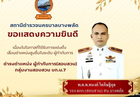 สน.บางพลัด ขอแสดงค … อ่านเพิ่มเติม สน.บางพลัด ขอแสดงความยินดี กับ ข้าราชการตำรวจที่ได้รับการแต่งตั้ง เลื่อนตำแหน่งสูงขึ้น